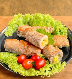 Kiaulienos suktinukai su sūriu keptuvėje