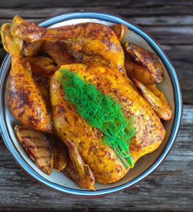 Orkaitėje kepta vištiena su kriaušėmis