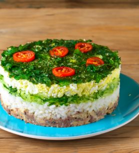 Salotos su konservuota žuvimi, ryžiais ir kiaušiniu