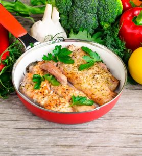 Vištiena su džiūvėsėlių plutele keptuvėje