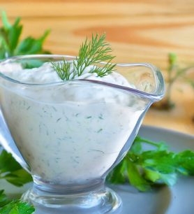 Graikiškas jogurto padažas su agurkais ir česnaku vištienai