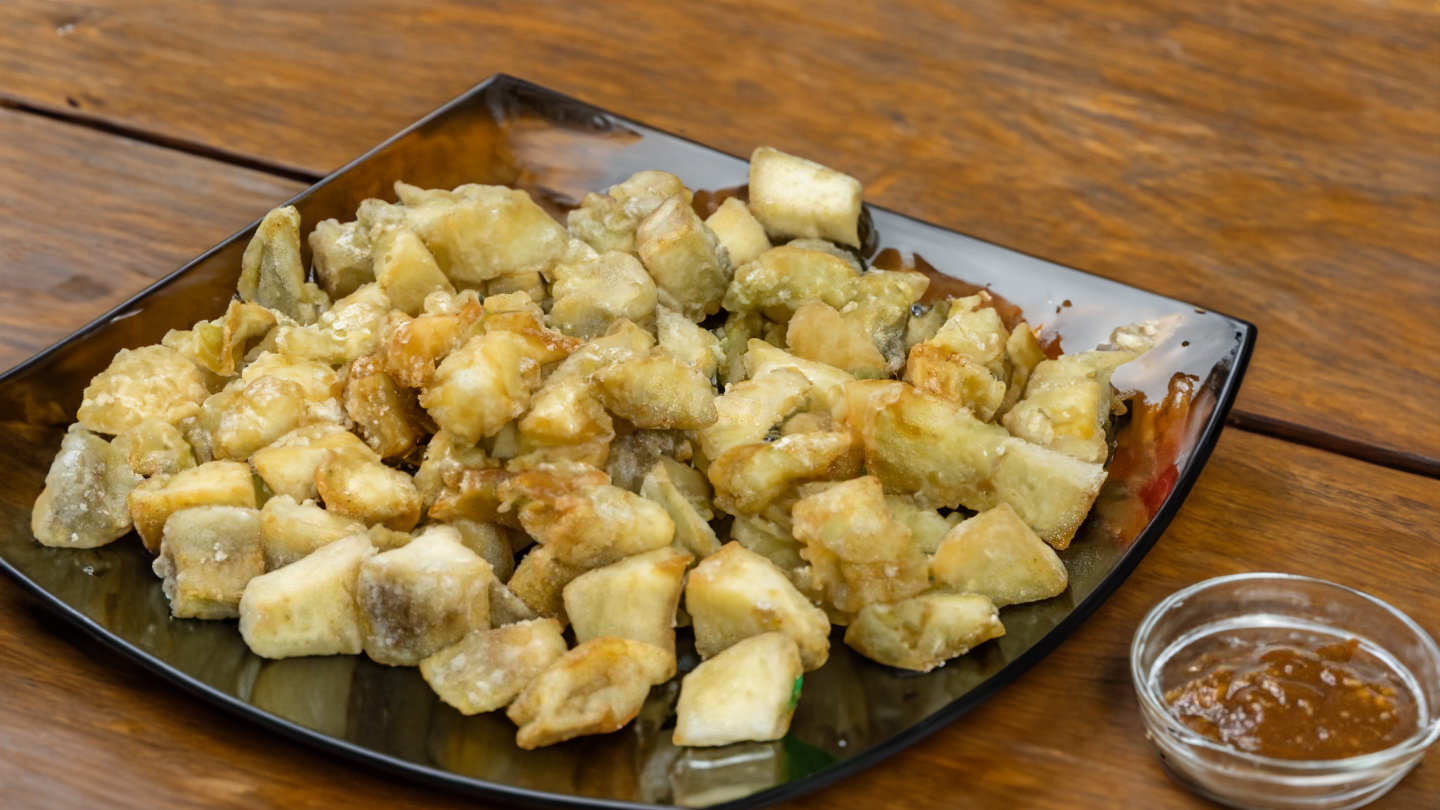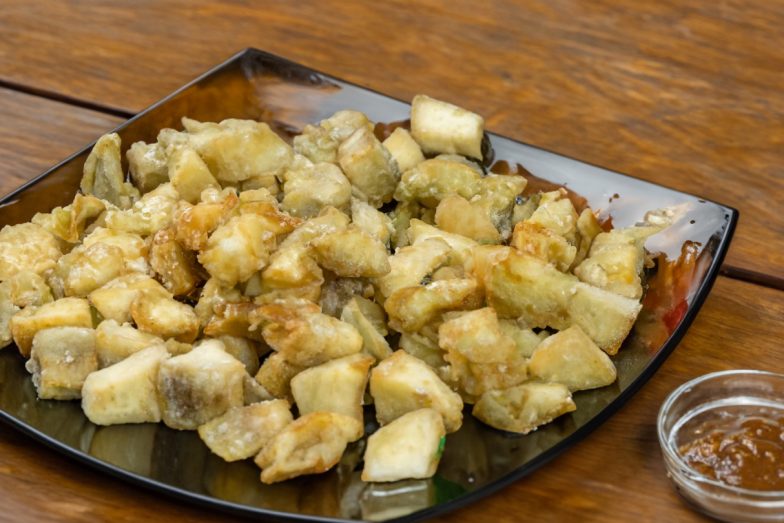 Baklažanų užkandis kinišku stiliumi – traškūs kepti baklažanai su intensyvaus skonio padažu. Greitas ir paprastas receptas iš sezoninių produktų.