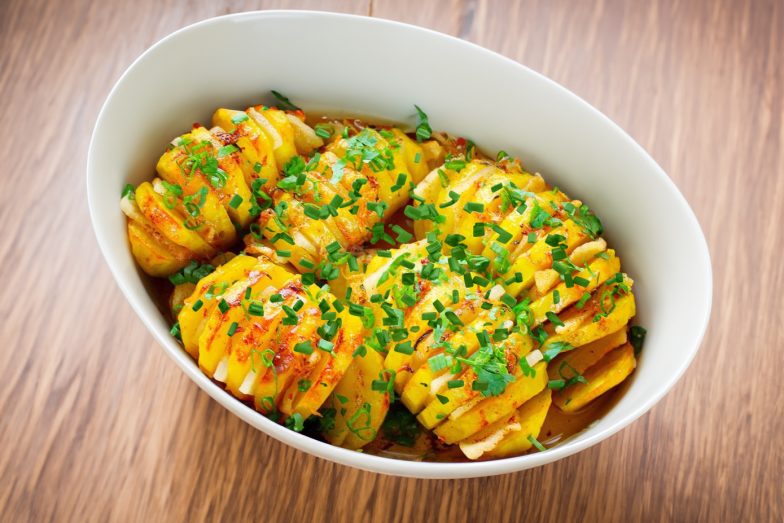 Bulvės orkaitėje su lašiniais – ekonomiškas, sotus ir nepaprastai skanus patiekalas. Puikus originalus garnyras, kuris nustebins svečius.