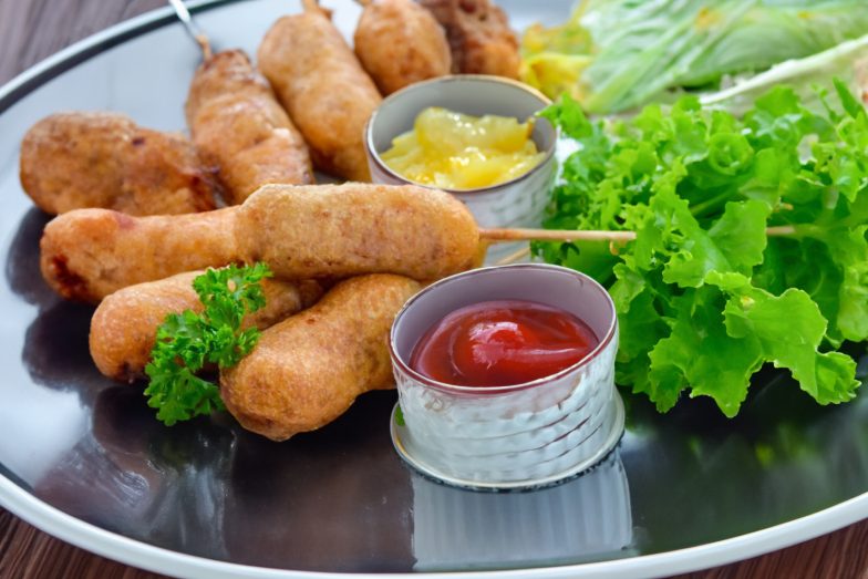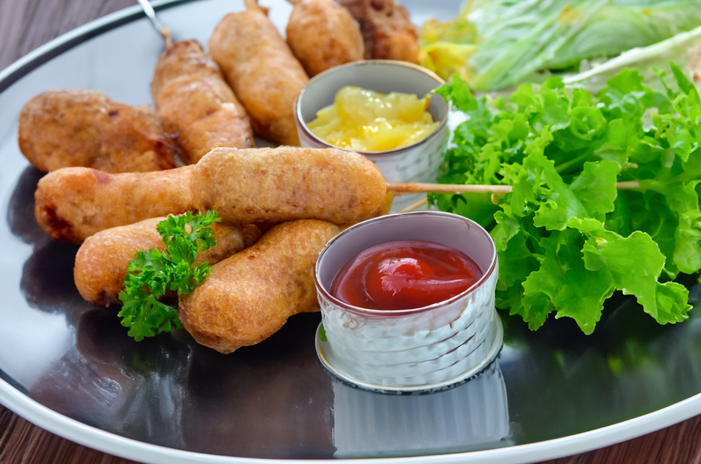 Dešrelės tešloje ant pagaliuko – traškus ir skanus užkandis visai šeimai! Jas paprasta gaminti ir kepti galima be gruzdintuvės.