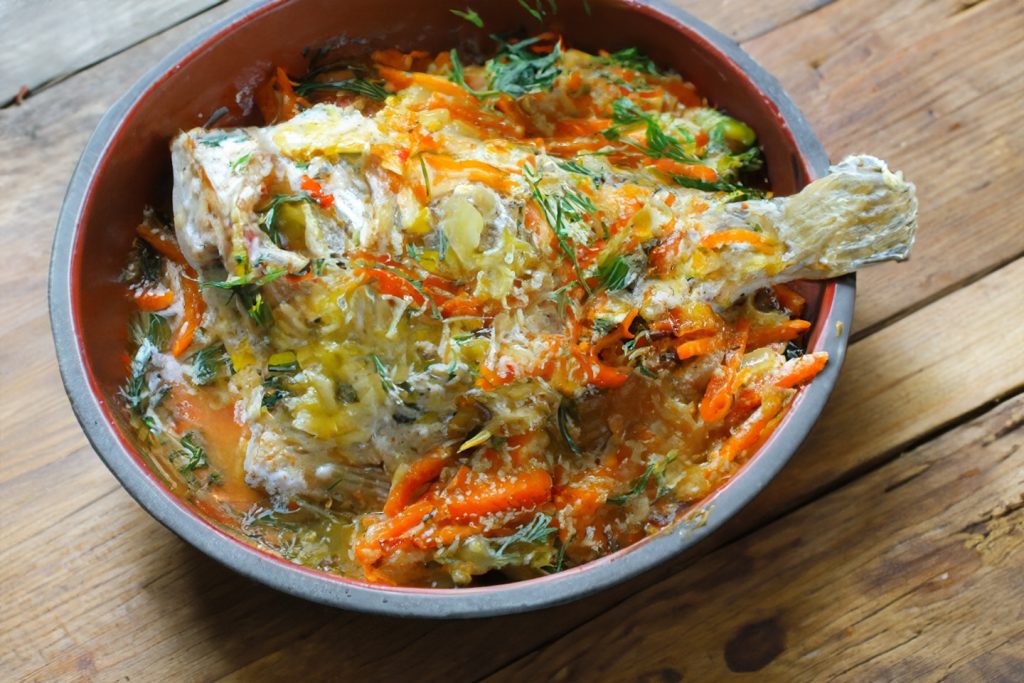 Dorada su daržovėmis grietinėje – sultinga, švelni ir kvapni žuvis keptuvėje su daržovėmis ir žolelėmis. Paprasta, bet labai gardi vakarienė!