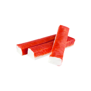 Krabų lazdeles nulupkite nuo plėvelės ir supjaustykite mažais kubeliais.