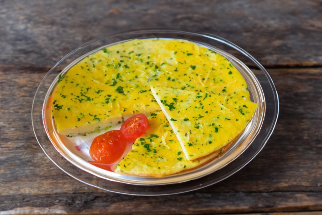 Paruoštą omletą dėkite į lėkštę ir patiekite. Skanaus!