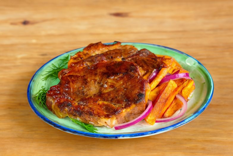 Kiaulienos sprandinė keptuvėje – minkšta, sultinga kiauliena su auksine plutele, greitai paruošiama keptuvėje. Tinka šeimos pietums ar šventėms.
