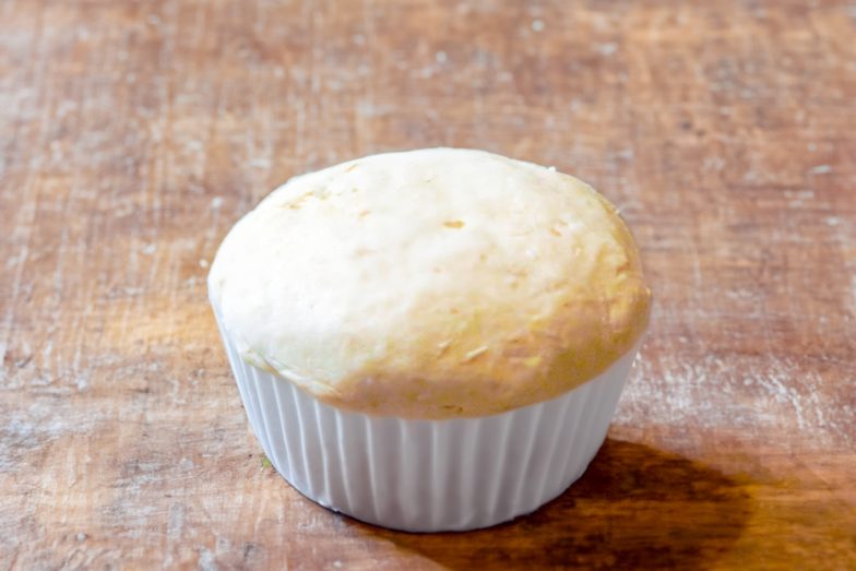 Miltuose padarykite duobutę ir supilkite skystąją dalį – kefyrą.