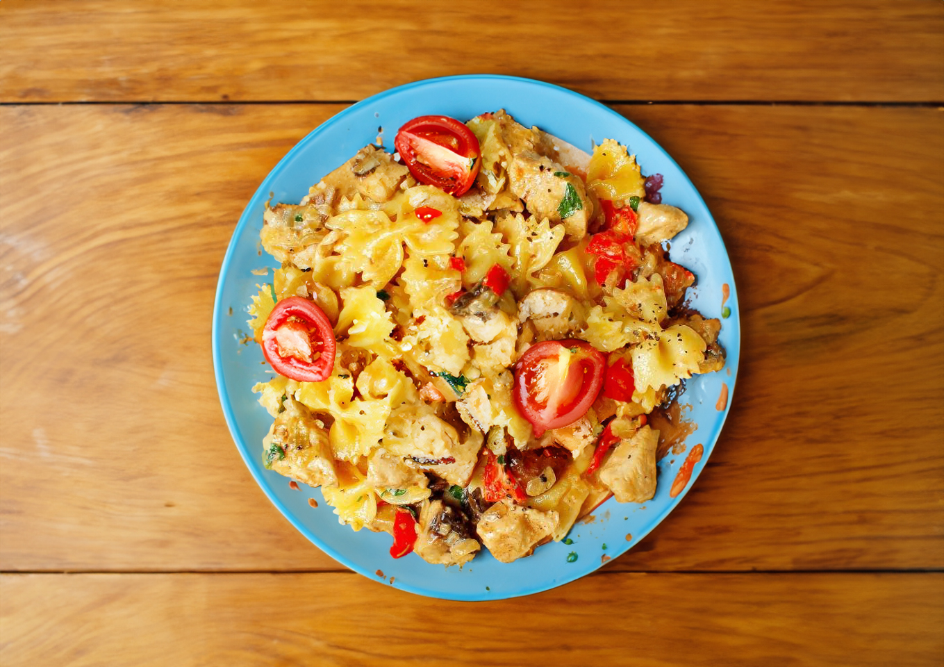 Makaronai su vištiena ir grybais – gardus ir sotus patiekalas visai šeimai. Aromatingas grybų padažas su svogūnais ir paprikomis daro jį neįveikiamą!