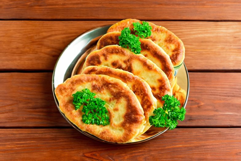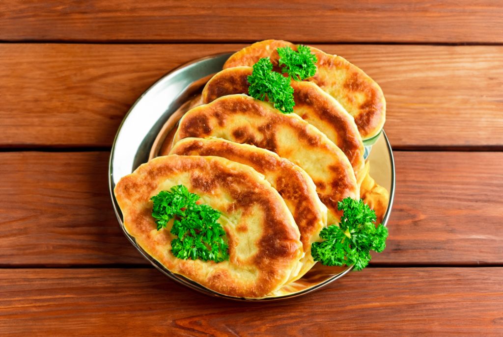 Ploni bulviniai pyragėliai keptuvėje – švelni kefyro tešla su bulvių, varškės ir žalumynų įdaru. Puiki alternatyva duonai prie sriubų.