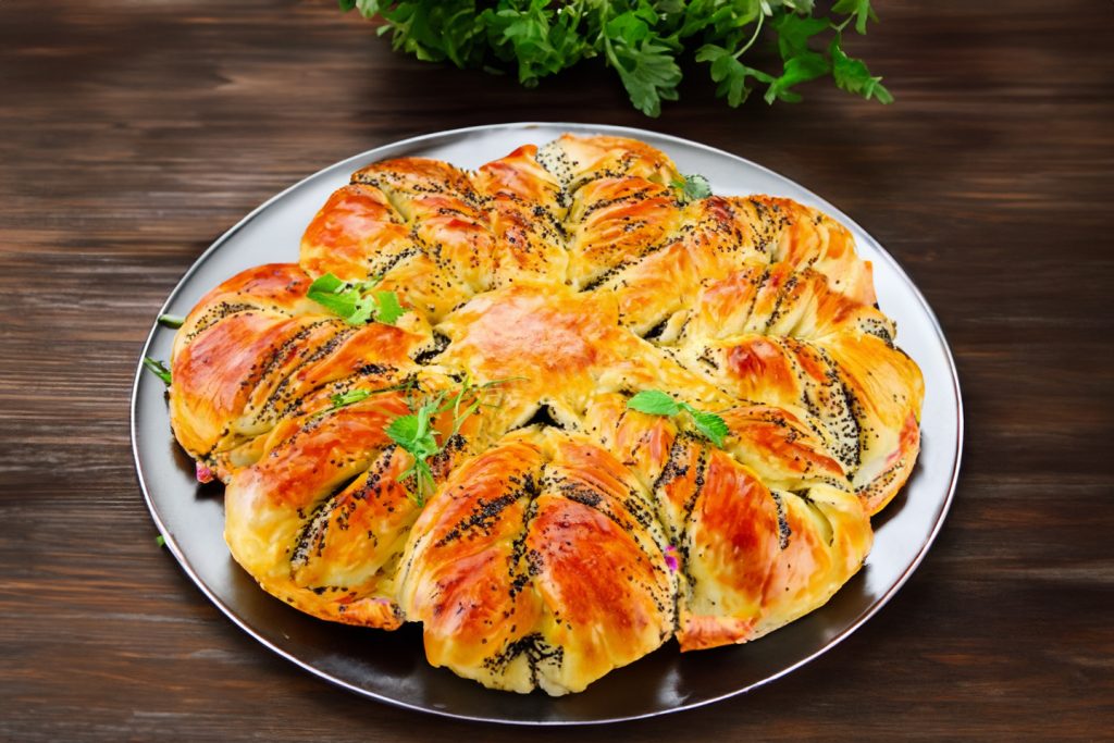 Pyragas su aguonomis – purus, minkštas ir labai gražus! Mielinė tešla gėlės formos – puikus pasirinkimas šventei ar prie arbatos.