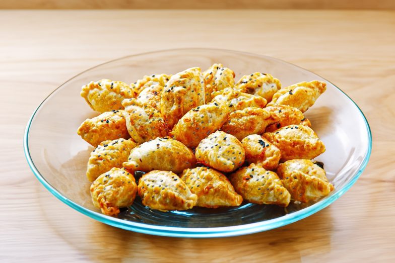 Pyragėliai iš sluoksniuotos bemielės tešlos orkaitėje – auksiniai, sultingi, greitai paruošiami. Išorė traški, įdaras minkštas, tinka užkandžiui ar pagrindiniam patiekalui.