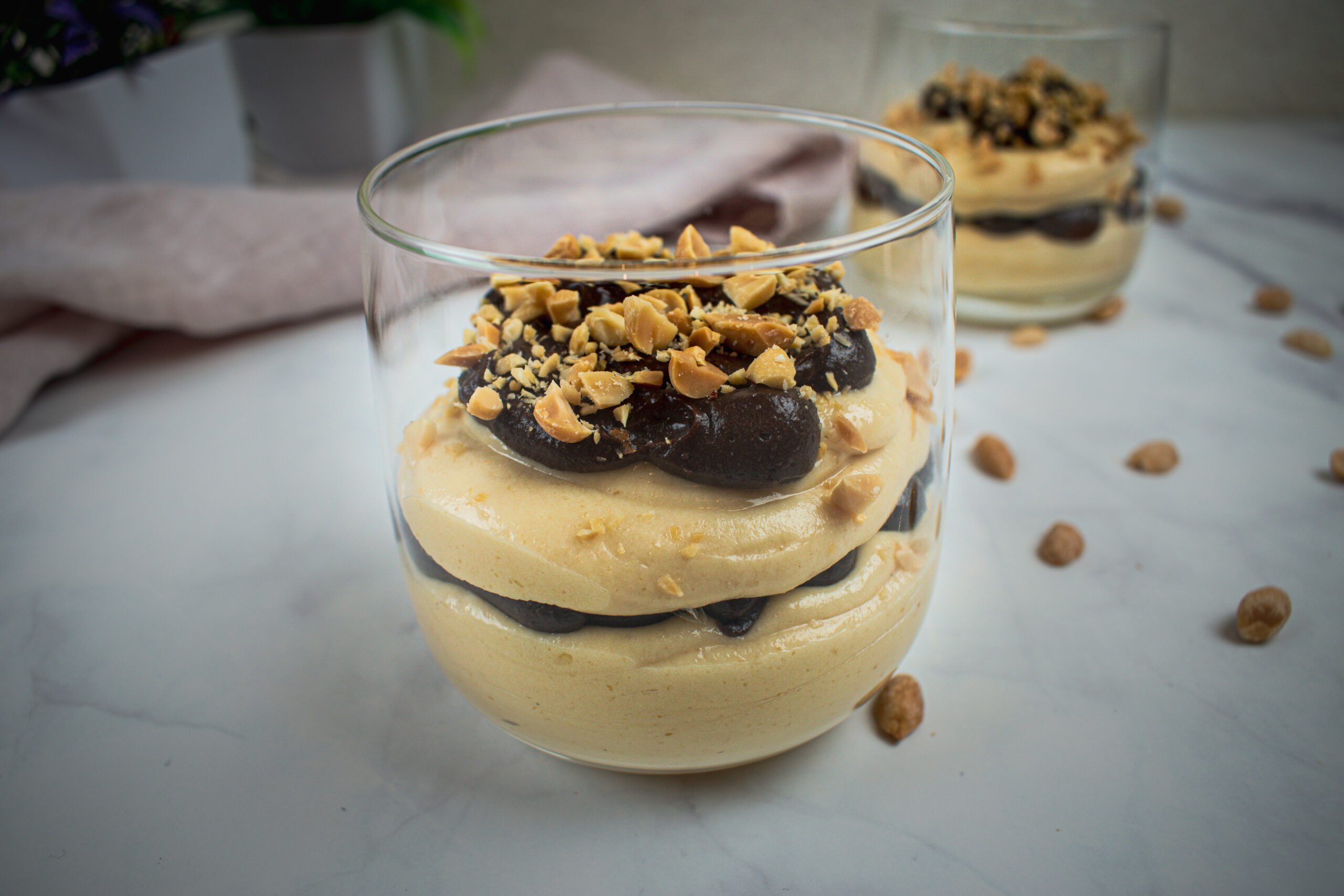 Riešutų sviesto ir šokolado putėsiai – tarsi kreminis „Snickers” stiklinėje