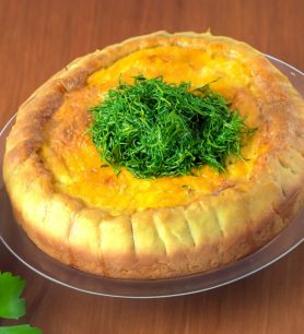 Išmaišykite paruoštą patiekalą, papuoškite žalumynais ir patiekite.