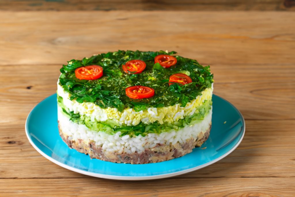 Salotos su konservuota žuvimi, ryžiais ir kiaušiniu – sultingos, traškios ir nebrangios. Tinka kasdienai ar šventiniam stalui, paprastos ir skanios.
