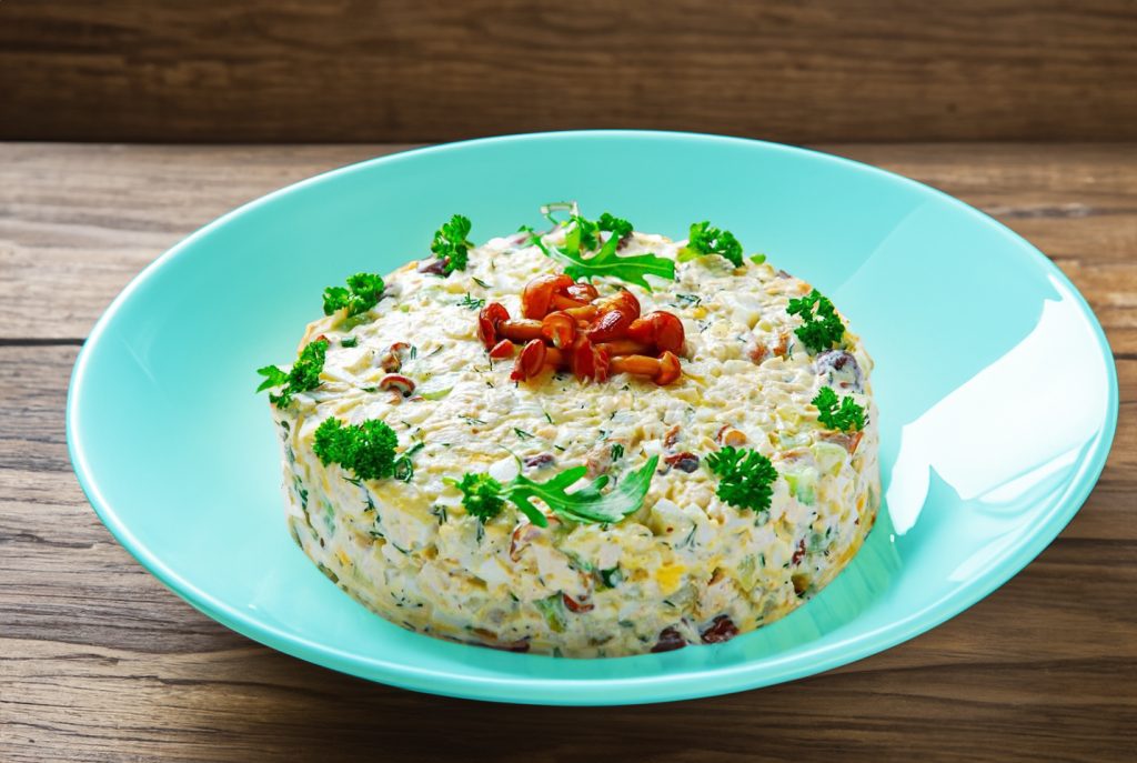 Salotos su marinuotais kelmučiais ir vištiena
