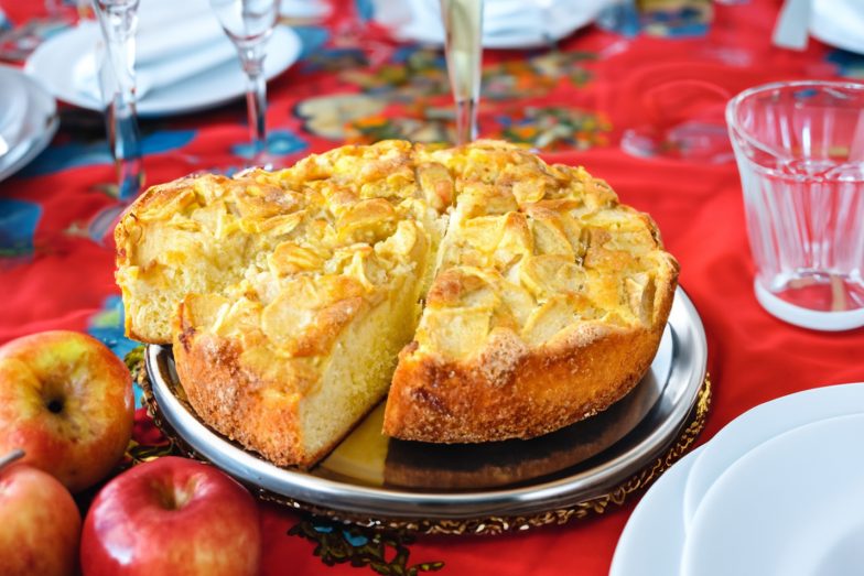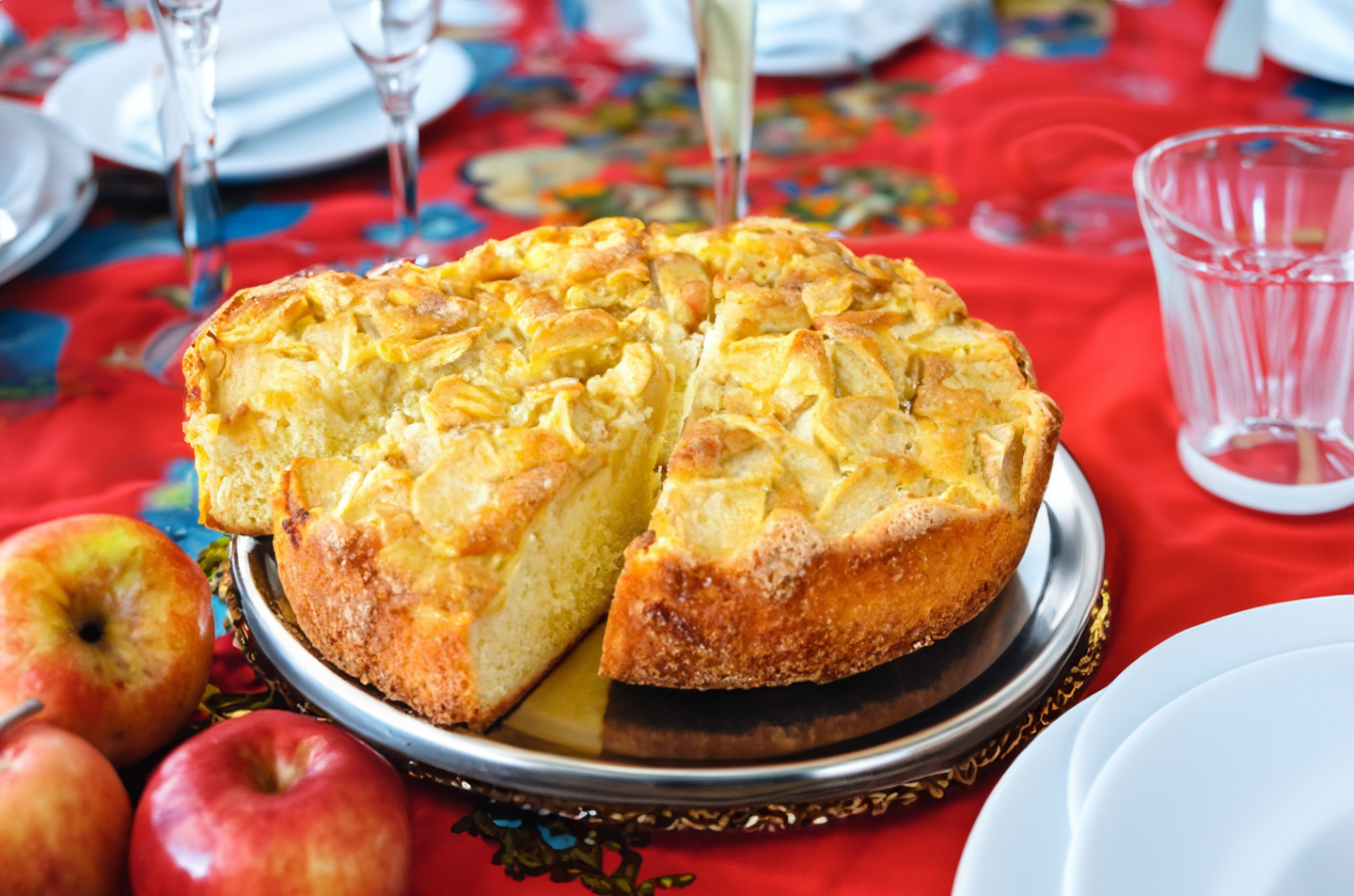Šarlotė su kiaušiniais ir obuoliais – puri, minkšta, kvapni, be kepimo miltelių. Kiaušiniai suteikia purumą, obuoliai gaivumo. Puikus šeimos pyragas.