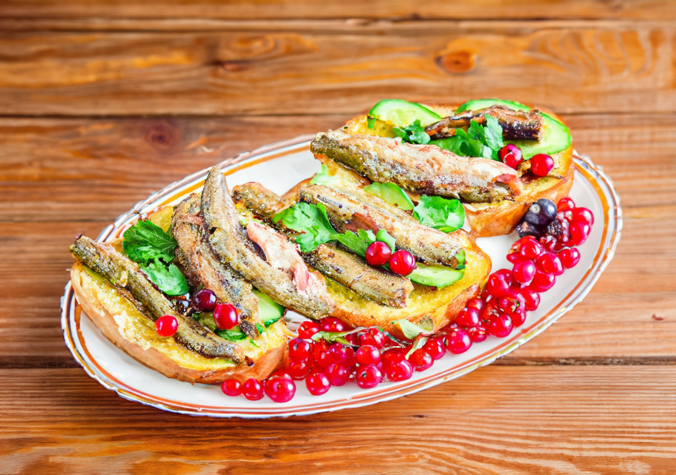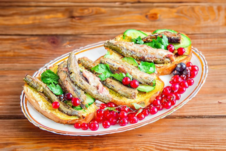 Ant kiekvieno sumuštinio uždėkite 1–2 šprotus.