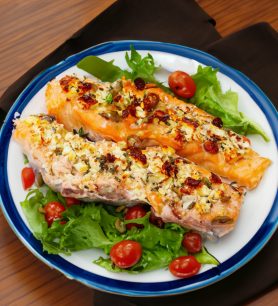 Orkaitėje kepti raudonosios lašišos kepsniai