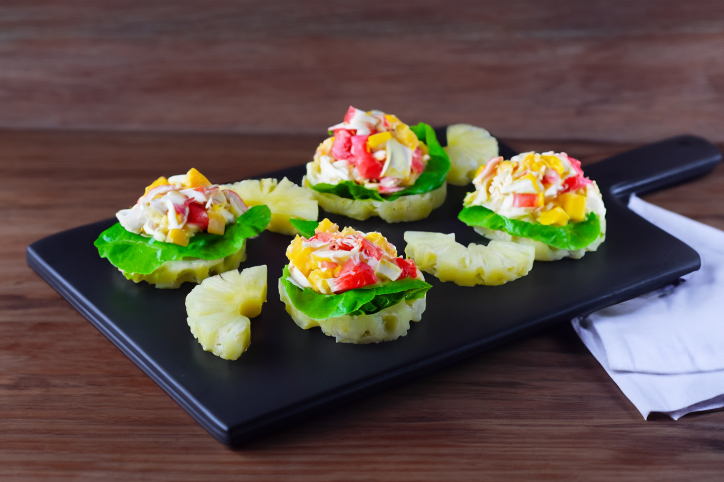 Užkandėlės su raudona žuvimi ant iešmelių ir kreminiu sūriu